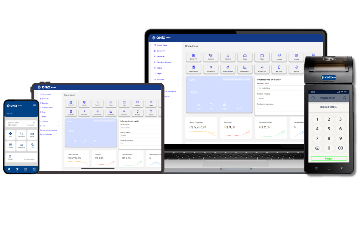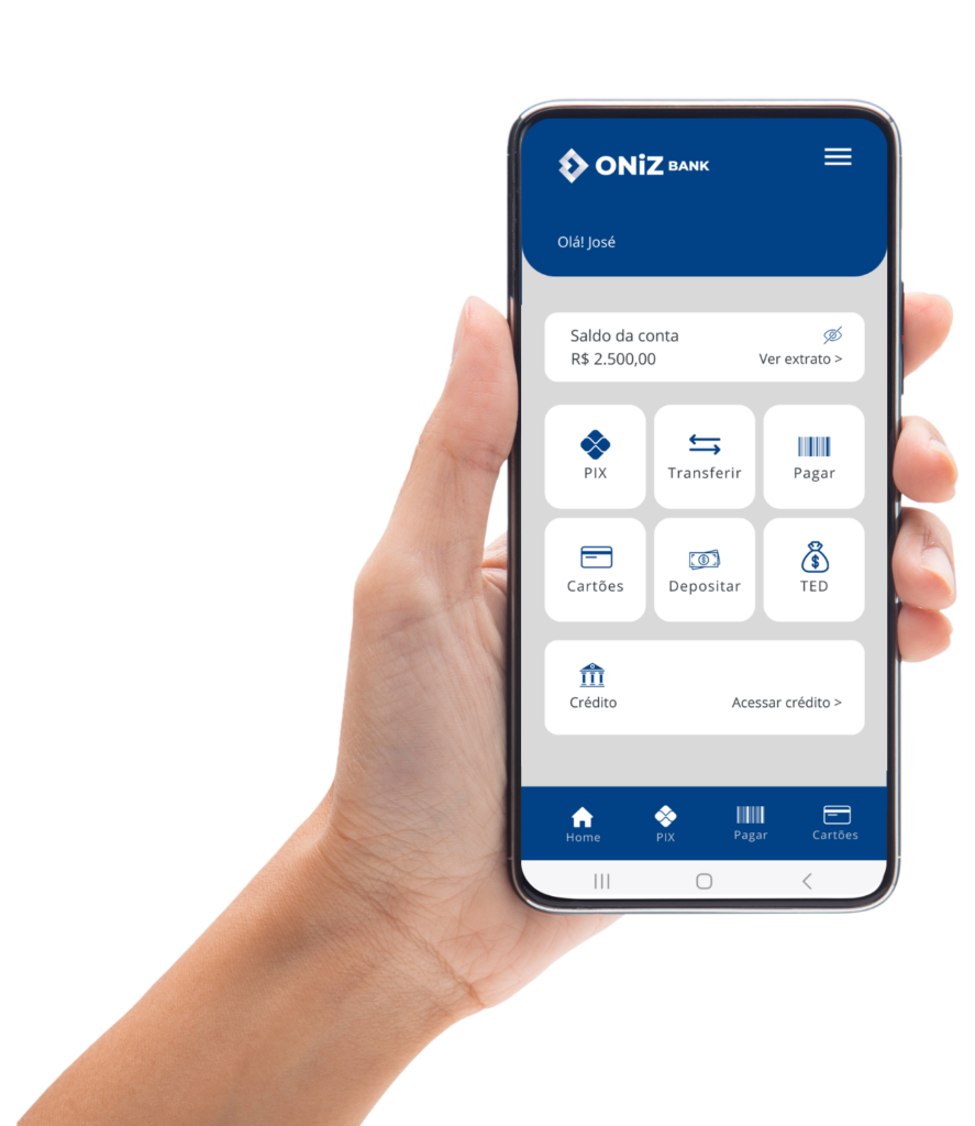 Com a Oniz Bank, ficou muito mais fácil controlar suas finanças aqui você encontra serviços digitais práticos e benefícios exclusivos e gratuitos, trazendo mais praticidade para o seu dia a dia